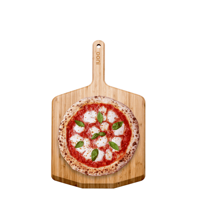 Lance pizzas con facilidad utilizando la tabla de bambú para servir pizzas de Ooni. Esta tabla es liviana y duradera. Con una superficie de bambú suave, es resistente a la humedad y evitar que la masa de pizza se pegue. También sirve como tabla para servir y rebanar pizzas.